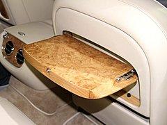 Mulsanne的奢華內(nèi)裝從皮革挑選到木紋搭配,創(chuàng)造個(gè)人風(fēng)格的極大化,除了親近人文的工藝點(diǎn)綴外,先進(jìn)科技的搭載,也是增添車室高貴不可或缺的運(yùn)用。 整塊實(shí)木運(yùn)用的餐桌、皮革包覆頂篷、窗框與C柱內(nèi)側(cè),即便是置于門上的菸灰缸,也以拋光處理的不銹鋼打造,握于手中的質(zhì)感與質(zhì)量,令人印象深刻。
