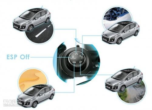 標(biāo)致3008還有一個(gè)值得一提的功能就是抓地力控制系統(tǒng);其由一個(gè)先進(jìn)的牽引力控制系統(tǒng)和特殊的泥/雪輪胎,通過自動(dòng)調(diào)節(jié)前輪的牽引力輸出方式和功率來達(dá)到對(duì)應(yīng)的效率。標(biāo)致的這套系統(tǒng)通過人工來進(jìn)行切換,其一共有五個(gè)控制檔位:標(biāo)準(zhǔn)、雪地、越野(泥地、爛路、濕滑草地)、沙石地和關(guān)閉;通過調(diào)節(jié)不同的檔位來適應(yīng)不同的路面情況。