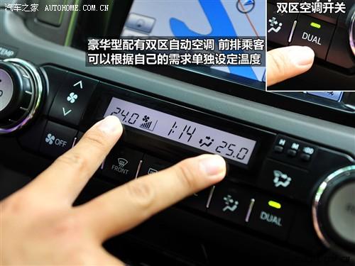 中間的液晶屏為觸摸式設計,相比那些旋鈕和搖桿操作更加直觀簡單,而其功能也很豐富,導航、藍牙電話,DVD播放等功能一應俱全。液晶屏下方的是空調(diào)控制區(qū),普拉多采用雙區(qū)自動空調(diào),主副駕駛可以分別調(diào)節(jié)自己需要的溫度。