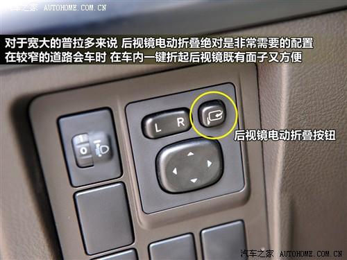 方向盤的左右兩側各有一組控制按鈕,左側為后視鏡和大燈調(diào)節(jié),值得一提的是普拉多還帶有電動后視鏡折疊功能,在狹窄路面會車時,這個功能既方便又有面子。右側的兩個按鍵和安全息息相關,2檔起步可用于冰雪路面,車身穩(wěn)定系統(tǒng)則可防止車輛失控。中控下方的四驅(qū)模式切換為旋鈕式,比上代的機械把手使用更方便。