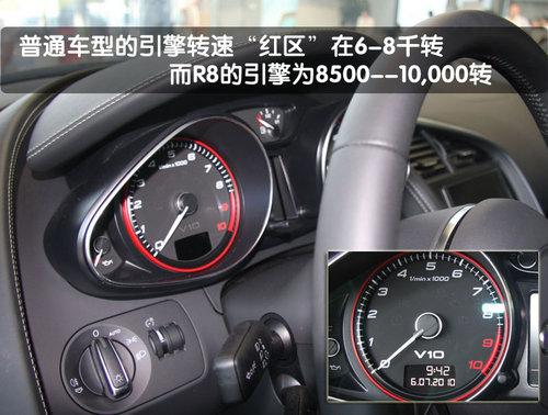 通過駕駛室內(nèi)的轉(zhuǎn)速表可以看出,這臺發(fā)動機的轉(zhuǎn)速范圍可以達到最高9000轉(zhuǎn),而“紅色區(qū)域”從8000轉(zhuǎn)才剛剛開始。也就是說有它別于一般的車輛,為了得到最佳的功率和扭矩輸出,讓R8的發(fā)動機保持在5-8千轉(zhuǎn)進行工作是相對合理的。這時,每一個聽到R8呼嘯的人也許都會說:“喔,我想那輛車一定非常棒!”奧迪R8提供了三幅真皮包裹的運動型方向盤,在10點和2點位置都有凸起從而方便駕駛員的抓握。多功能方向盤后方的換檔撥片可以在手動模式下實現(xiàn)類似F1賽車式的換檔方式。