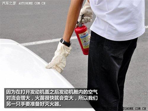 步驟三:發(fā)動機蓋打開后由于空氣對流增強,火苗會迅速變大,這時我們不能驚慌,拿著滅火器沖著發(fā)動機艙亂噴,在保證自己安全的情況下,盡可能地將滅火器的噴射口接近并對準(zhǔn)著火點進(jìn)行噴射,同時呼救其他車型的援助(因為車用的那種小罐滅火器的容量有限)。