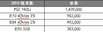 寶馬“悅世版”四款車型分別是740Li、X5 xDrive35i、X1 xDrive25i及320i,每款車型限量供應(yīng)188-588輛不等,總計1244輛,從7月中旬開始銷售。四款“悅世版”車型通過個性化定制提供各自專有的顏色、設(shè)計或裝備,共同之處是全部使用了何鏡堂先生設(shè)計的“中國印”作為主標(biāo)識,“它把中國館的造型很濃縮地抽象地表示出來,通過白和紅的搭配和文字‘二0一0’形成一種很有中國韻味的一個圖章!