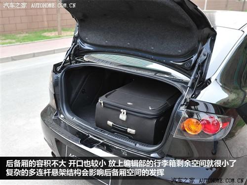 馬自達(dá)3后備箱容積不大甚至讓我感覺有些小,而且離地較高,女士在向后備箱裝較重物品時會比較費(fèi)勁;不過后排座椅可以以4:6的比例放倒,如果偶爾搬運(yùn)大件行李,這樣的設(shè)計會有所幫助,但是我認(rèn)為能力還是有限。