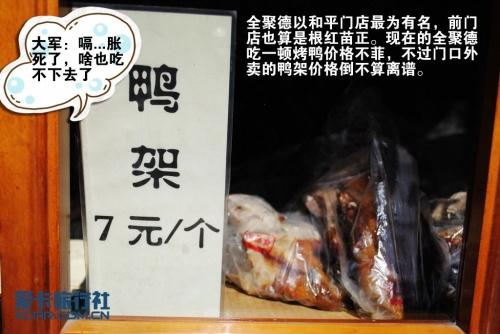 前門大街最著名的老北京小吃,應該就要算是“全聚德”了,對于這家中華著名老字號,大家早已聞名已久。不過考慮到自己肚子的承受能力,最后還是放棄了在全聚德大吃一頓的打算?谒鄣率讋(chuàng)的掛爐烤鴨已久的瘦劉有些怏怏,不過這點遺憾很快就被“都一處”燒麥的誘惑打消的無影無蹤了。