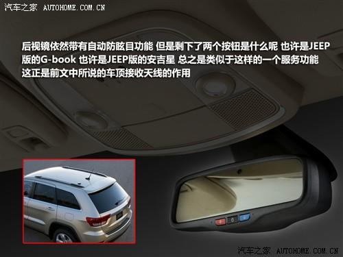 車內(nèi)反光鏡上有三個(gè)按鈕,中間的為自動(dòng)防眩目的開(kāi)關(guān),那另外兩個(gè)是什么呢,或許是JEEP的“G-book”,或許是JEEP的“安吉星”,總之我們猜測(cè)就是類似于這兩個(gè)系統(tǒng)的一種服務(wù)功能,而上文提到的車頂天線應(yīng)該就是該系統(tǒng)的接收模塊吧。