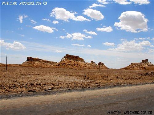 離開雅丹地貌后,我們的車隊繼續(xù)進(jìn)發(fā),大約兩個小時的車程后景色有了較大的變化,公路兩旁是被陽光曬得閃閃發(fā)光的沙漠,還有就是藍(lán)藍(lán)的天空,此時已經(jīng)是下午的1點(diǎn)15分了,看來我們的目的地離我們不遠(yuǎn)了。