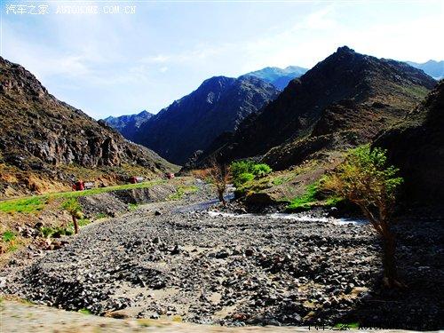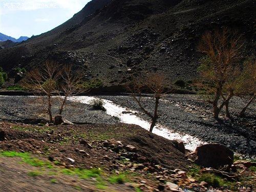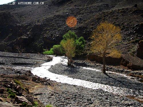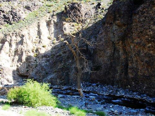 兩旁的山對我來說已經(jīng)不陌生了,所以我把目前轉移到了山路旁的小溪,當然小溪也是沒有太多的吸引力的,反而是那些干枯的胡楊更令我著迷,沒有葉子而且站得筆直筆直的。據(jù)了解,這種胡楊常生長在沙漠中,它耐寒、耐旱、耐鹽堿、抗風沙,有很強的生命力。這也很難怪在那么惡劣的環(huán)境下仍然屹立不倒。