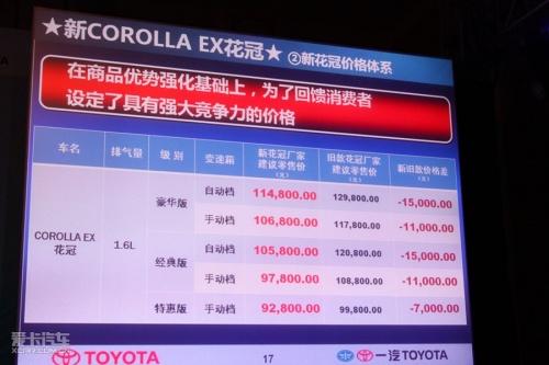 7月13日,也就是長春車展的前晚,一汽豐田改款花冠EX正式上市,新車共推出五款車型,新款花冠除了外觀上有明顯的變化外,配置也有所提升,而起步售價在老款的基礎(chǔ)上下調(diào)了7千元,高配車型的降價幅度更是高達(dá)1.5萬元,這也使得花冠將把性價比作為自己的主要競爭力,矛頭直指穩(wěn)坐乘用車銷量前三的悅動和新凱越。