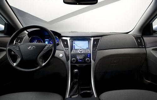 坐在現(xiàn)代YF車中,你很難與老款的索納塔車型相結(jié)合,內(nèi)飾變得非常時尚與前衛(wèi),同時也一改老款索納塔的桃木裝飾條,與而代之的則是我們更鐘愛的銀色飾條。中控臺的設(shè)計(jì)也十分簡潔,但在配置上十分豐富。除導(dǎo)航、自動空調(diào)等舒適裝備外,全系車型都標(biāo)準(zhǔn)配置了前排正側(cè)氣囊,電子穩(wěn)定控制系統(tǒng),牽引控制系統(tǒng),ABS+EBD電子制動力分配,前部主動型頭枕和輪胎壓力監(jiān)視系統(tǒng)等等。