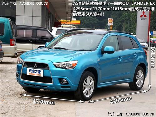 三菱的ASX勁炫是一款進口SUV車型,車身尺寸為4295mm、1770mm、1615mm,軸距為2670,離地間隙為195mm。雖然外表上看著比OUTLANDER小巧不少,但它的軸距和離地間隙和他的兄弟是一樣的。