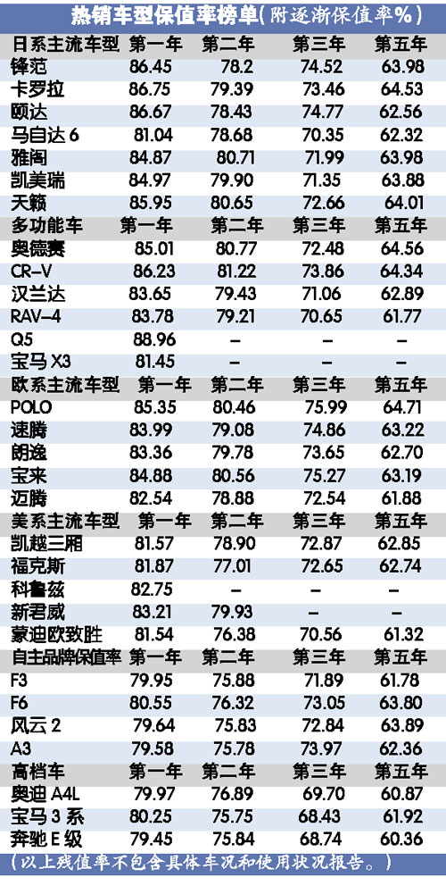 相對而言,大眾品牌的車型在廣州市場上繼續(xù)保持高保值率的“美名”,尤其以POLO、速騰、寶來、朗逸此類10萬元左右的A級車保值率最高!