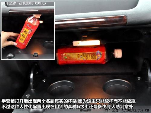 然而一向粗枝大葉的奔馳G級(jí)也有考慮細(xì)致的一面。打開(kāi)手套箱,放平的手套箱蓋就是一個(gè)可以放兩個(gè)杯子的托盤(pán),為旅途時(shí)的小憩提供了方便。