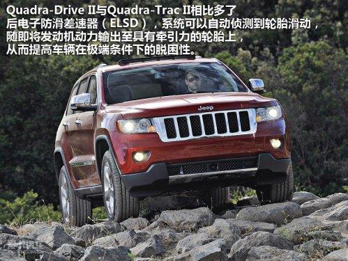 Jeep為新大切準備了兩套不同的四驅(qū)系統(tǒng),升級后的Quadra-Trac II全時四驅(qū)系統(tǒng)在大部分時間中向所有車輪傳遞動力,在系統(tǒng)檢測到某個車輪需要更多牽引力時,通過接通離合器組,從而能將最多100%的動力分配至前軸或者后軸。