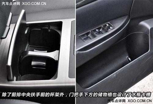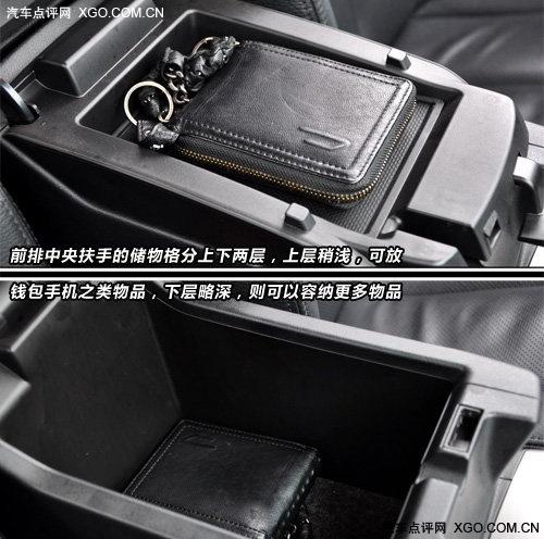 前排空間中,除了當(dāng)把后面的兩個杯架以外,門把手下方的儲物格也特別設(shè)計(jì)了放置水瓶的卡槽,可以將水瓶穩(wěn)固的放置其中,中央扶手的儲物格分上下兩層,上層稍淺,可放小物件,下層略深則可以容納更多的物品。