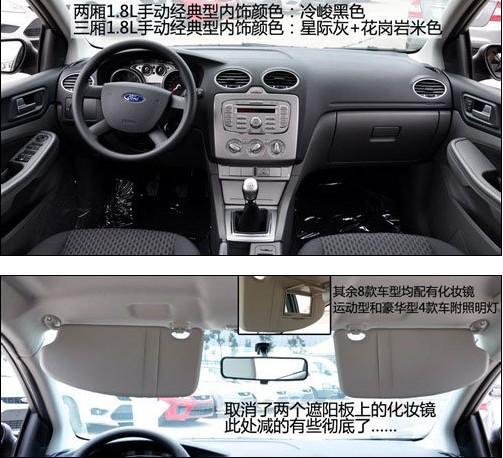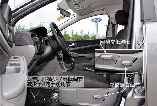兩廂經(jīng)典型采用黑色內(nèi)飾,而三廂則采用上深下淺的顏色搭配。車(chē)內(nèi)最主要的簡(jiǎn)配有三項(xiàng),兩側(cè)遮陽(yáng)板上的化妝鏡被取消,這是比較影響日常使用的。駕駛席座椅減掉了高度調(diào)節(jié)功能,變?yōu)?向手動(dòng)調(diào)節(jié)。安全配置上前排側(cè)氣囊被取消,只剩下主副駕駛正面的兩個(gè)氣囊。