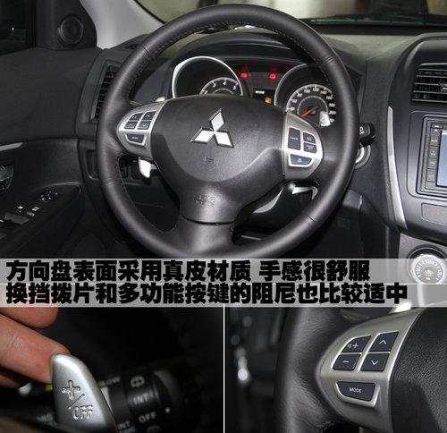 三菱ASX勁炫的方向盤表面采用真皮材質包裹,手感非常舒服,而且這款車的方向盤配備了多功能按鍵和換擋撥片,阻尼適中,操作也很是便利。另外,三菱ASX勁炫方向盤兩側的控制桿模具做工都比較不錯,質量水平非常到位。