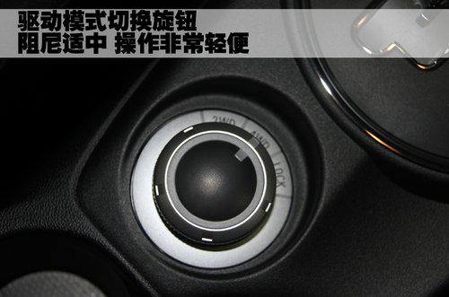 三菱ASX勁炫采用的是分時四驅系統(tǒng),在車內可以通過圖中所示的旋鈕選擇調節(jié)驅動模式,這個控制調節(jié)旋鈕設計的非常小巧,阻尼適中,操作非常輕便。