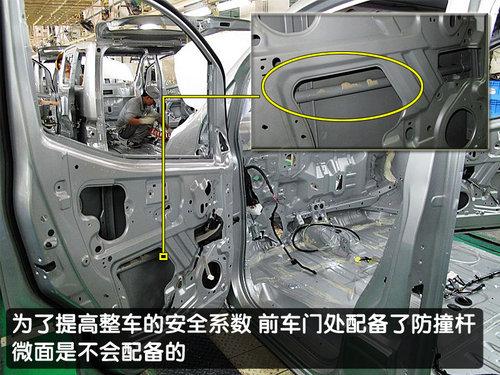 在車輛進行組裝時,我們發(fā)現(xiàn)到在前車門內(nèi)部配有一根很粗壯的防撞桿,防撞桿加強了車身在發(fā)生碰撞時的車身強度,這個不拆下車門板是看不到的。