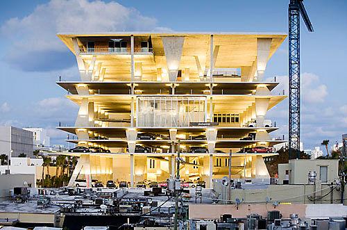 作為行人長廊的補充,這座“雕塑車庫”在一個混凝土-玻璃結(jié)構(gòu)中結(jié)合了300個車位的車庫,零售商店和一個頂層海景餐廳。車庫的每一層都利用了自然光線,而且能夠一覽邁阿密優(yōu)美的天際線。