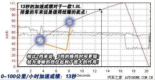 發(fā)動(dòng)機(jī)動(dòng)力比較充沛,1.0L發(fā)動(dòng)機(jī)在5擋手動(dòng)變速箱的配合下將車(chē)在13秒內(nèi)從0加速到100Km/h,變速箱換擋入位比較順暢,帶來(lái)了良好的動(dòng)力銜接,加速成績(jī)比較突出。但是偏長(zhǎng)的剎車(chē)距離有些力不從心,代步工具不必激烈駕駛。