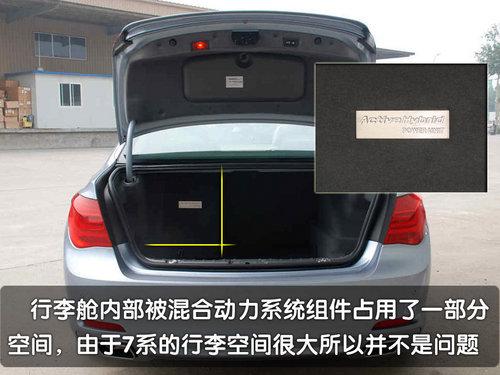 在外觀部分的辨識性上,混合動力7系轎車采用了唯一的海藍色漆面噴涂。配合分布在車身側(cè)面、車尾的“Active HyBrid 7”字樣,讓大家很容易就能夠看出這是一臺與眾不同的寶馬7系轎車。而由于電池組的關(guān)系這臺7系混合動力車型的行李空間也有所減少,但是相對于7系轎車充足而寬大的后備箱容積來說減少的部分不會為實際的使用泰來太多的不便。