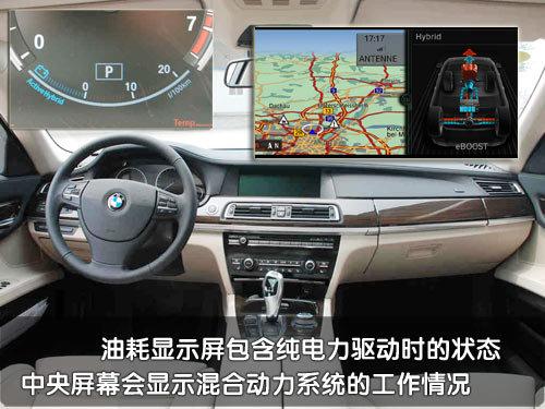 在儀表臺部分混合動力7系轎車的油耗顯示區(qū)域與普通車型明顯不同,它的指針從“Active HyBrid ”開始,指針指向這個部分的時候代表并不會消耗燃油。而混合動力7系轎車的電機部分并不能單獨支撐車子行駛很長的時間,它更多的作用是為了輔助引擎,以及在車輛制動和滑行過程中收集制動能量轉(zhuǎn)化為電能儲存在電池中。