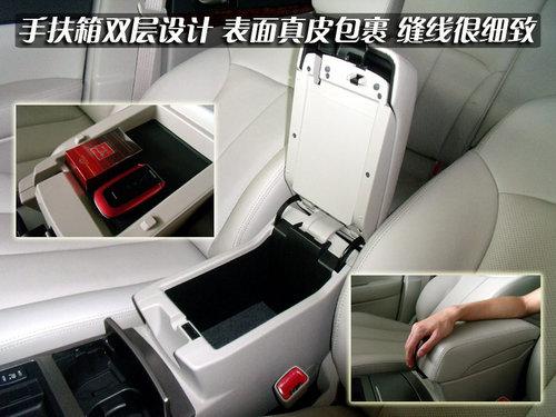 中央手扶箱同樣由真皮包裹,手扶箱體積適中,肘部的支撐十分到位,接觸感也很舒適,并采用了雙層的設計,在實用性上有所增強。