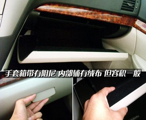 新傲虎的手套箱容積并沒有想象的大,開啟的角度也比較小,內部空間比較狹窄,但能滿足日常使用。上方為軟性材料包裹,手感一般,拉手開啟阻尼適中。