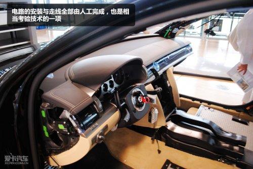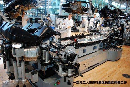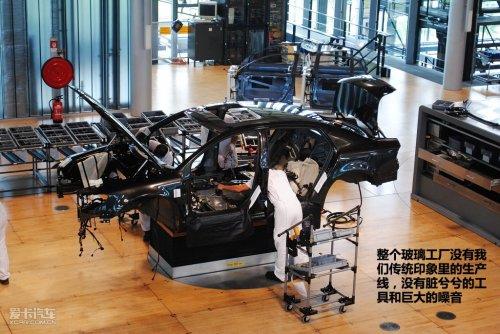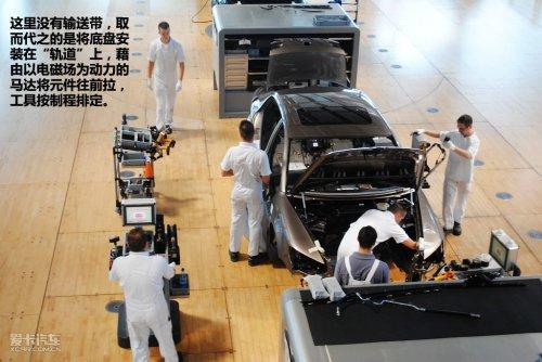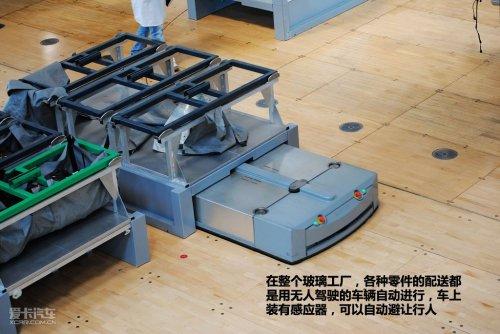 這里沒有輸送帶,取而代之的是將底盤安裝在“軌道”上,藉由以電磁場(chǎng)為動(dòng)力的馬達(dá)將元件往前拉,工具按制程排定。在整個(gè)玻璃工廠,各種零件的配送都是用無人駕駛的車輛自動(dòng)進(jìn)行,車上裝有感應(yīng)器,可以自動(dòng)避讓行人。而除了前后風(fēng)擋、輪胎以及備胎的安裝使用機(jī)器人之外,整個(gè)輝騰的生產(chǎn)大部分工作都是由手工完成。