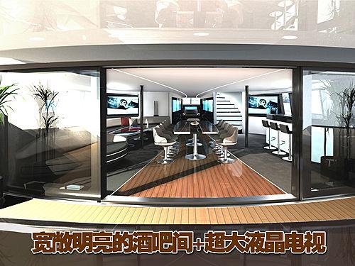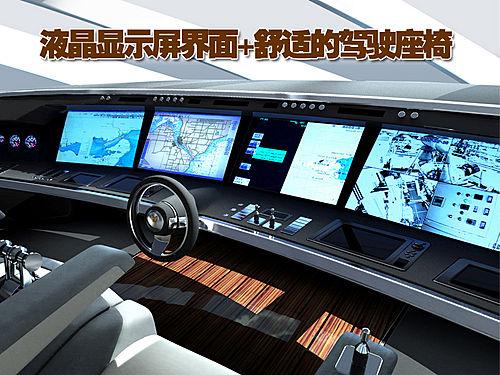 從官方設計圖上我們可以看到起奢華的內(nèi)部裝飾,液晶顯示屏的操控界面,寬大舒適的駕駛艙座椅,在其船艙還配置了寬敞的酒吧間,木質(zhì)的地板以及灰色的裝飾增添了雅致的風格。此外還有舒適的長沙發(fā)以及小型會議桌等等。