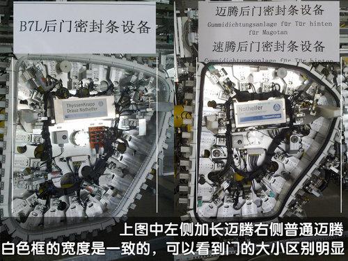 是的,在生產(chǎn)線上記者確實(shí)看到了寫有“B7L”字樣的車門試裝區(qū)域,但是廠家工作人員在這個(gè)部分是不允許拍照的所以沒(méi)有詳細(xì)照片。但是從車門的“夾具”(這是我們自己起的名字)來(lái)看,不同的邁騰(B7)與加長(zhǎng)后的邁騰(BL),在門的大小上有非常明顯的區(qū)別,并且我們從工作人員那里也獲得了B7L是加長(zhǎng)邁騰的肯定答案。