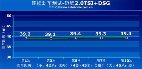 全力剎車(chē)時(shí)邁騰保持了良好的車(chē)身姿態(tài),百公里制動(dòng)距離39.14米,相信大家都能滿意這個(gè)結(jié)果,制動(dòng)系統(tǒng)反應(yīng)敏捷,通俗點(diǎn)講:隨踩雖有;腳下力度不斷增大,剎車(chē)的感覺(jué)也越發(fā)強(qiáng)烈,最終成績(jī)沒(méi)有讓我們失望。
