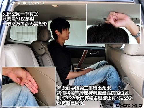 漢蘭達(dá)3.5升車型都為7座,由于車身比較寬大,使得它的第三排座椅容下兩個胖子也問題不大,或許是為了照顧第三排的空間,第二排座椅的空間不算特別寬敞,身高為1.85米的乘客調(diào)到合適的駕駛位置,后排腿部到前排只剩下3指的余量。關(guān)于漢蘭達(dá)的詳細(xì)體驗和測試文章,請參看以下鏈接。
