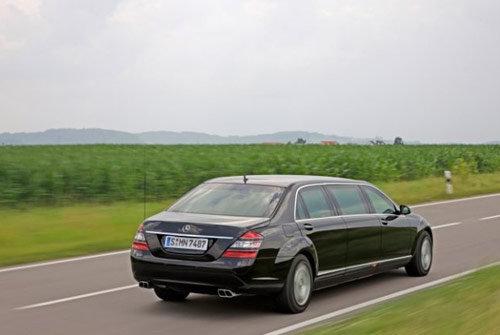 S600 Pullman Guard防彈車看上去長(zhǎng)得有些夸張,事實(shí)上超過(guò)6.3米的車身長(zhǎng)度比目前的長(zhǎng)軸版勞斯萊斯幻影還要長(zhǎng),4.3米的軸距已經(jīng)是一款中級(jí)轎車的整車長(zhǎng)度。經(jīng)過(guò)全方位裝甲防護(hù)的它重達(dá)5.3噸,比兩臺(tái)奔馳S600L加在一起還要重。巨大的重量全部落在了四條直徑27.6英寸的米其林PAX防爆胎上,為S 600 Pullman Guard提供動(dòng)力的是5.5升V12雙渦輪增壓發(fā)動(dòng)機(jī),雖然最大功率達(dá)到517馬力,但受到體重的局限,官方公布的最高時(shí)速僅為160公里/小時(shí)。