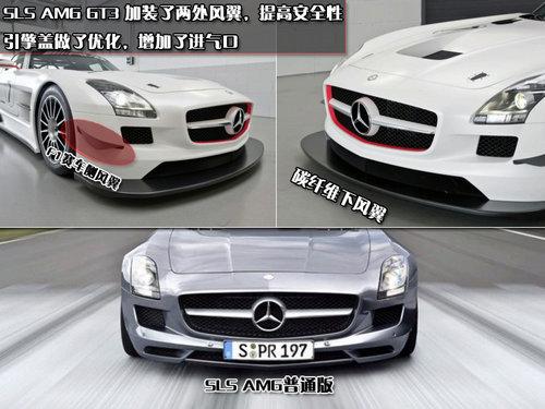 2010年4月,奔馳SLS AMG在北京國際車展榮耀發(fā)布,據(jù)悉將在年底之前引入國內(nèi)。近日,奔馳又推出了一款街道賽車版SLS AMG車型SLS AMG GT3,宣布其歐洲售價為397460歐元,約合人民幣3500000。這比SLS AMG在歐洲的價格高了190000歐元左右,相當(dāng)于兩部SLS AMG的價格。今天我們來對比一下它們之間到底有什么不同。