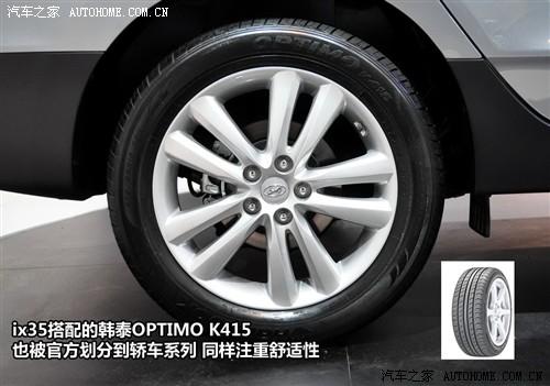 韓泰OPTIMO K415也被官方劃分得到轎車輪胎系列,看來現(xiàn)代ix35的確不適合在野地里行駛,從選用的輪胎上就能看出,該車更多突出的的是舒適性。采用米其林輪胎的車型暫時還沒有見到,不知道是采用的哪款型號。另外,ix35的備胎也為全尺寸鋁合金輪轂的,沒有縮水。