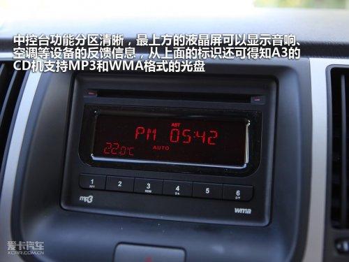 中控臺功能分區(qū)清晰,最上方的液晶屏可以顯示音響、空調(diào)等設(shè)備的反饋信息,從上面的標識還可得知A3的CD機支持MP3和WMA格式的光盤。中控臺中央的區(qū)域是音響控制面板,想用熟練還需要簡單的適應(yīng)。