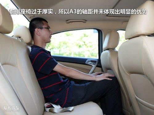 A3座椅調(diào)節(jié)幅度成為了空間的瓶頸,此次改款奇瑞并未對A3的空間方面進行調(diào)整,前排座椅坐姿仍然偏高,身材超過1.82米的人很難找到太舒服的坐姿,并且座椅的形狀也不利用空間最大化的利用。
