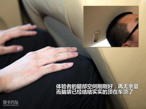 A3的軸距不小,但是與實際的表現(xiàn)有些出入,身高1.82米的體驗者調(diào)整好前排座椅后,坐在后排腿部空間剛好夠用,前排座椅的造型完全可以經(jīng)過設(shè)計后騰出更大的地方。更不幸的是我們的體驗者腦袋已經(jīng)頂住車頂了,可以說是漂亮的C柱下滑的流線犧牲了第二排的高度。