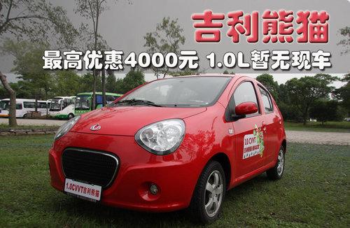 據(jù)吉利4S店銷售人員介紹,可享受國家補(bǔ)貼的熊貓1.0L車型在北京并無銷售,店內(nèi)現(xiàn)車主要以1.3L車型為主,目前現(xiàn)車齊全,優(yōu)惠幅度最大為4000元。銷售人員還表示,如果近期到店購買,還可以有進(jìn)一步優(yōu)惠。