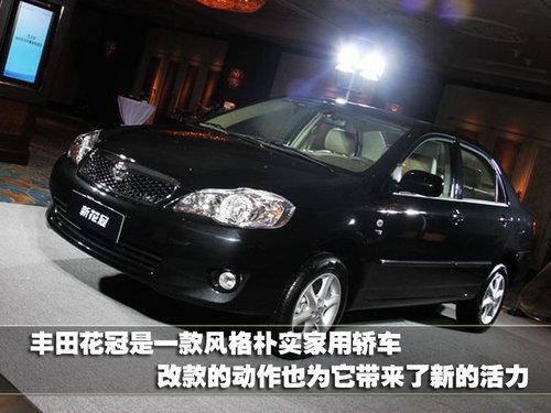 2011款花冠在前臉部分進行調整,中網面積加大,直瀑式隔柵被網狀所取代;大燈的樣式也有所改變,在原有造型的基礎上增加了一條銀色燈眉。新款花冠標配八幅條鋁合金輪轂,老花冠的六幅條輪轂將作為選裝件提供。