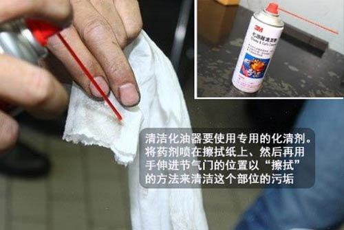 在早期,一般師傅使用化清劑的方式進(jìn)行清洗時(shí),會(huì)直接朝節(jié)氣門內(nèi)部做噴灑的清潔動(dòng)作。而這次我們使用擦拭的方式來進(jìn)行。這是因?yàn)榛鍎⿻?huì)腐蝕塑膠、橡膠類的材料,而且還會(huì)將所有的潤(rùn)滑油通通溶解。所以噴灑的方式雖然面積可以更廣泛、但日久也會(huì)造成內(nèi)部機(jī)件的損傷,容易造成怠速步進(jìn)馬達(dá)、油封等問題。