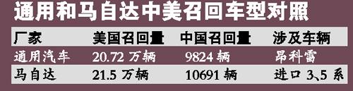 這些在美國召回的車,在中國是否有出售呢?答案是肯定的。據(jù)本報(bào)昨天查詢,通用和馬自達(dá)的上述缺陷車型,在華銷售數(shù)量涉及近兩萬輛。