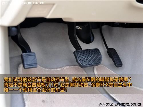 另外,在這款車(chē)上我還見(jiàn)到自主品牌中少有的腳制動(dòng)剎車(chē),這樣的設(shè)計(jì)多見(jiàn)于合資品牌,而自主品牌中帝豪EC8可能是首家采用這樣設(shè)計(jì)的。