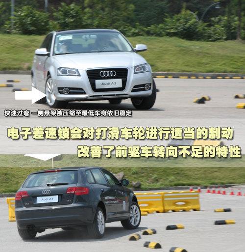 為了讓我們?nèi)轿惑w驗(yàn)奧迪A3 Sportback的性能,奧迪公司特意安排了難度極高的場地試駕。奧迪A3 Sportback的前懸掛為麥弗遜減震滑柱總成帶下部三角形控制臂,鋁制副車架和管型穩(wěn)定桿。