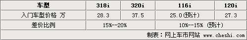其實BMW針對相同引擎進(jìn)行功率扭矩的不同調(diào)教也是有先例的,目前國內(nèi)銷售的318i和320i就屬于相同引擎排量的不同動力調(diào)教,巧合的是這兩款3系所使用的也是1系120i的這款4缸自然進(jìn)氣引擎。從價位上來說3系的318i和320i之間的定價差距在15%--20%左右,那么未來BMW若引進(jìn)1系的116i車款,其官方定價同樣會比現(xiàn)在的120i更低。根據(jù)BMW 針對318i和320i的定價差異,116i與120i的定價差距大致會在10%--15%之間,也就是25萬元左右。