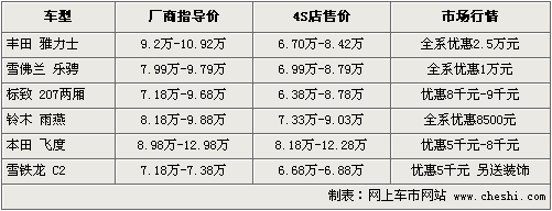 隨著國家政府推行小排量車的補(bǔ)貼政策,及人們對日常小型車的需求,各個廠商分別看重了這一市場的發(fā)展?jié)摿,逐步研發(fā)推出適合中國市場的小型車。8月30日,東風(fēng)日產(chǎn)也正式推出了A0級車型——瑪馳,從而日產(chǎn)也填補(bǔ)了在小型車系列中的空缺,與此同時我們選出了6款與瑪馳同級別的車型,看看這些車在近期都有哪些優(yōu)惠。