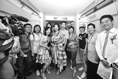 8月28日,北京,一對(duì)新人一改平常的婚車車隊(duì)接親,以騎自行車,換城鐵、地鐵的方式到達(dá)婚禮現(xiàn)場(chǎng),舉辦了一個(gè)綠色、時(shí)尚的婚禮。