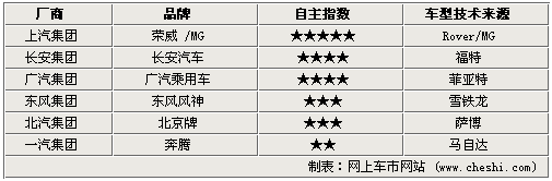 從上表可以看出,坐擁大眾和通用兩個(gè)合資品牌的上汽,無(wú)疑是自主之路走得最好的,在買斷ROVER先期打造了榮威750、550等車型,而后續(xù)推出的則是全新技術(shù)的車款比如350。而廣汽作為新的加入者,近日下線了傳祺新車,雖然新車源自菲亞特旗下的阿爾法羅密歐,但還是進(jìn)行了不少改進(jìn),并沒(méi)有完全照搬過(guò)來(lái)。而獲得兩星的一汽集團(tuán),其奔騰系列車型B50、B70依然是來(lái)源馬自達(dá)6,經(jīng)過(guò)了這么年的發(fā)展,僅僅是換個(gè)外觀就宣稱自主研發(fā)是很難讓人接受的,一汽集團(tuán)還需努力捍衛(wèi)老大的地位。